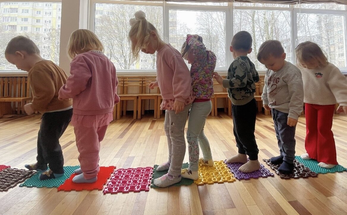 Todėl mūsų darželyje organizuojamos prevencinės sveikatinimo veiklos, skirtos vaikų plokščiapėdystės prevencijai.